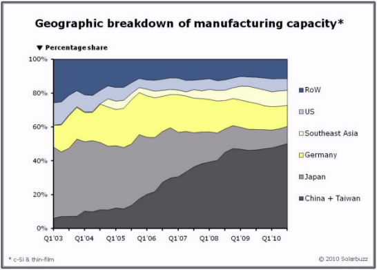 此時,全球各地的展覽正熱鬧展開,但是我們也應該將目光拉回到太陽能製造端了。2010年第三季將會是一個重要的里程碑,因為從此兩岸華人將生產世界一半以上的太陽能。