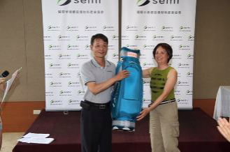 午餐聚會的一開始,活動主持人--友達高級工程師李家珍與SEMI協理何玫玲,即熱情地歡迎大家今天的參與。接著,友達科技副總經理也是達虎隊的榮譽會長羅方禎博士以及SEMI高爾夫球聯誼隊會長,即漢民科技副總經理林淑玲小姐先後上台致歡迎詞。在用餐的同時,主持人也進行當日賽程的頒獎活動,台灣記憶體公司召集人宣明智以淨杆數73.6榮獲冠軍殊榮,來自達虎隊的Intech公司副總經理干春成、KGI證券經理陳威任則分別以淨杆數73.6與74.4摘下亞軍與季軍。在頒獎活動的最後亦進行抽牌比大小的趣味遊戲,現場的氣氛頓時high到最高點,大夥歡聚一堂。本次活動中特別感謝由漢民科技贊助提供中午用餐時所暢飲的鮮釀啤酒,以及中國砂輪、台灣百和工業、Suntek Global公司亦贊助各項精美禮品作為球賽獎項。活動的最後,諸多球友們在問卷調查表中向主辦單位表示對此次活動甚感滿意,SEMI預計於八月份再次舉辦高爾夫球球聚,期盼球友們屆時亦能踴躍參與!
