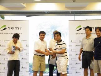 稍後主持人即進行當日賽程的頒獎活動:來自UMC西帥隊的力聚科技--黃志田以淨杆數67.2榮獲冠軍,SEMI球隊的追日潤公司--王慶棟以淨杆數69摘下亞軍,季軍則由UMC西帥隊的信寶國際--鄧仁琦以淨杆數69拿下。而眾所期待的「團隊優勝獎」則以隨機抽樣的方式由兩隊各抽出12位球友,加總其淨桿成績來做競賽,統計結果由UMC西帥隊奪得本次的團隊優勝獎,由會長代表球隊上台開心領取1萬元獎金。