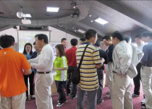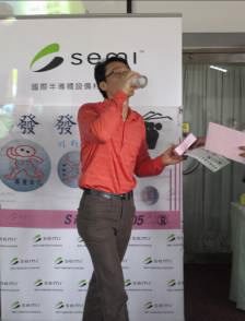 擊球活動約至中午告一段落,接下來的午宴,由發發隊--世禾科技總經理特助何啟源與SEMI台灣協理何玫玲共同擔任活動的主持人,為午宴揭開熱鬧的序幕。首先上台的是發發隊第一屆會長,目前為榮譽會長-鄭建發,他表示「對發發隊而言,這是第一次舉辦聯誼賽,藉此可以與業界有更多的接觸與交流,是個好的開始。」SEMI高球隊總幹事--九佳科技總經理馬慶祥亦代表SEMI高球隊上台致歡迎詞,他希望大家玩的盡興,藉此難得的機會跟業界老朋友、新朋友好好地聚聚。此外,主持人亦邀請今年度新入會的11位SEMI高球隊球友,一一上台自我介紹,讓大家有更進一步的認識。