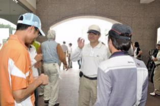 SEMI高爾夫聯誼球隊,這次將聯誼球賽觸角延伸到南部的科技園區,邀請到南科道爺隊進行球敘活動,5月15日當天道爺隊隊友們由現任會長--誼福公司董事長王明富領軍,在台南嘉南球場熱情地迎接SEMI球友的到來。來自SEMI球隊的球友們一早就搭乘高鐵南下,9:30分就在台南高鐵站集合完畢,隨即搭乘接駁小巴士,一行人帶著球具浩浩蕩蕩地前往球場,這是第一次SEMI球隊來到南部擊球,大夥兒頭頂著南台灣煦煦的陽光、呼吸著台南清新的空氣,心情亦顯得格外的興奮!
