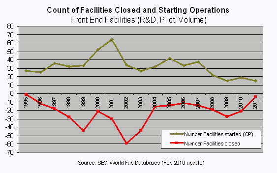 SEMI’s World Fab Forecast showed declines of –3 to – 4% in installed fab capacity in 2009, the first time capacity declined year-over-year in the history tracked in the SEMI database.